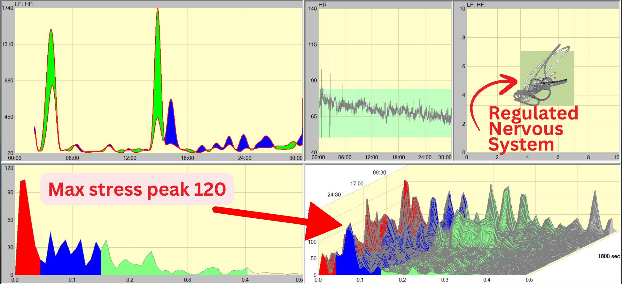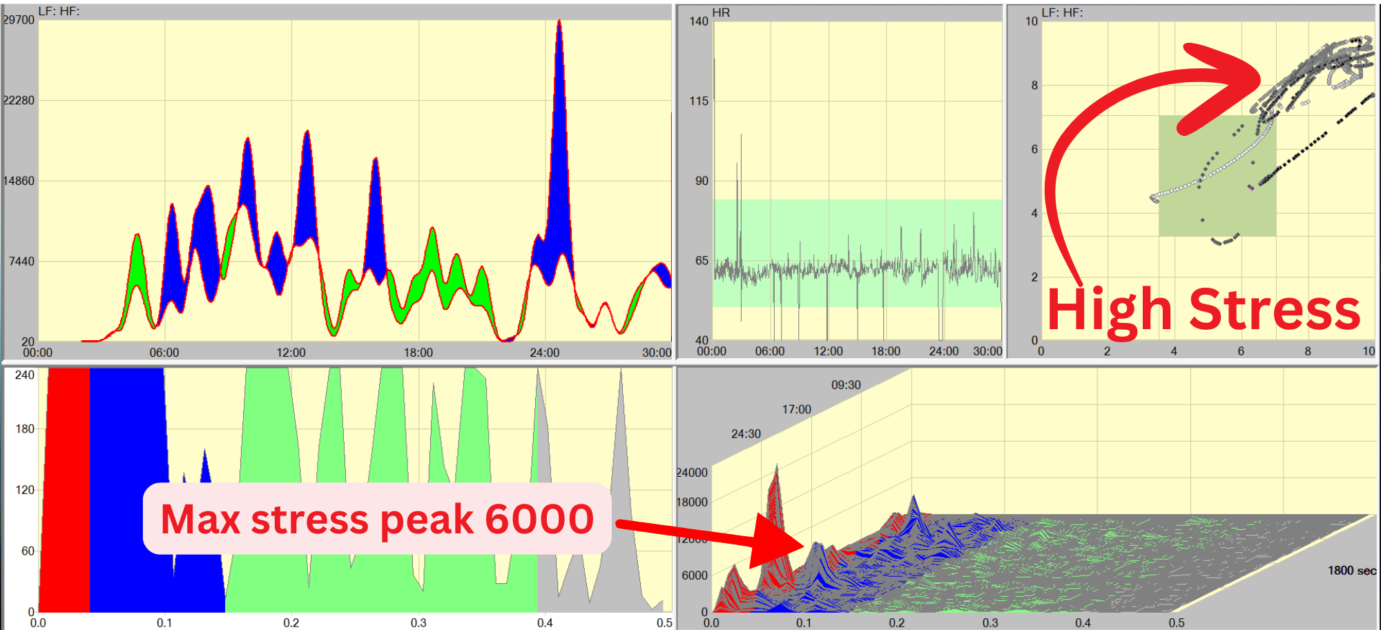 Using real-time heart rate variability, we see stress levels significantly reduce and normalise over a period of 2 months using the VibroSound Lounge.